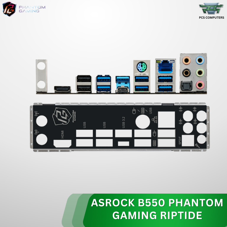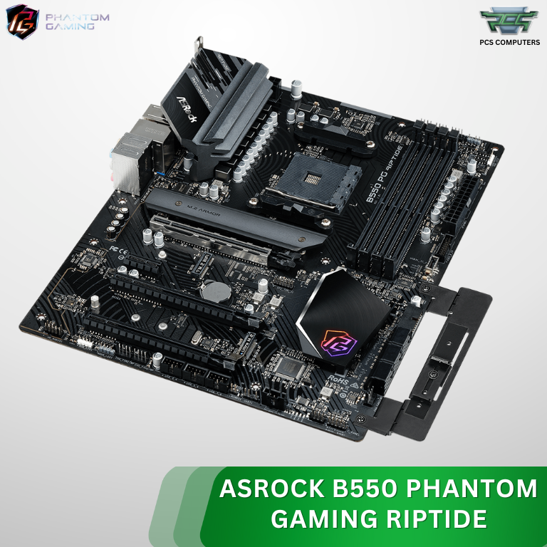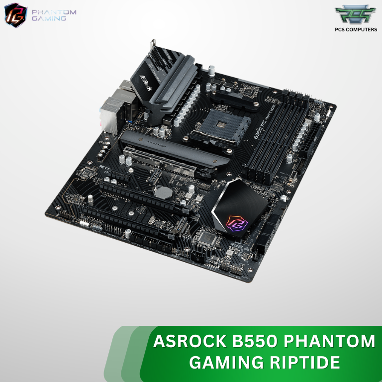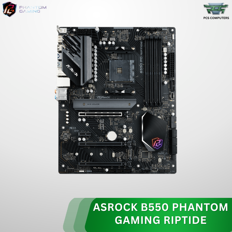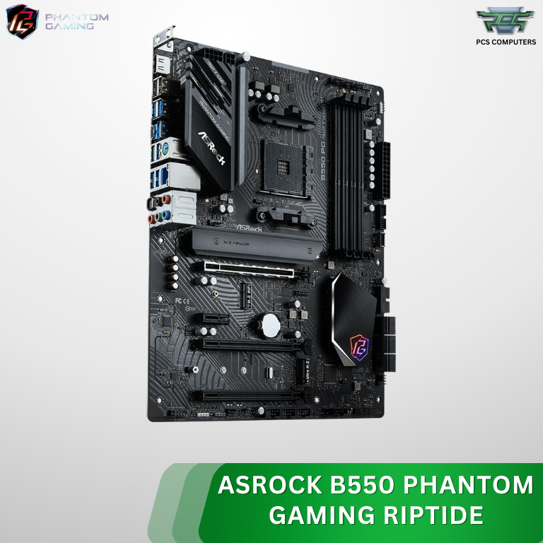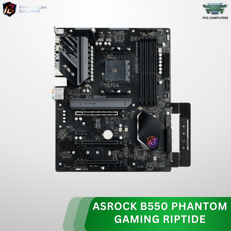 ASRock B550 Phantom Gaming Riptide ATX Motherboard – AMD AM4 Socket, PCIe 4.0, DDR4 4733+ (OC), Dual M.2 Slots, USB 3.2 Gen2, HDMI/DisplayPort, Polychrome RGB, High‑Performance Gaming Board Compatible with Ryzen 3000/4000/5000 Series Processors